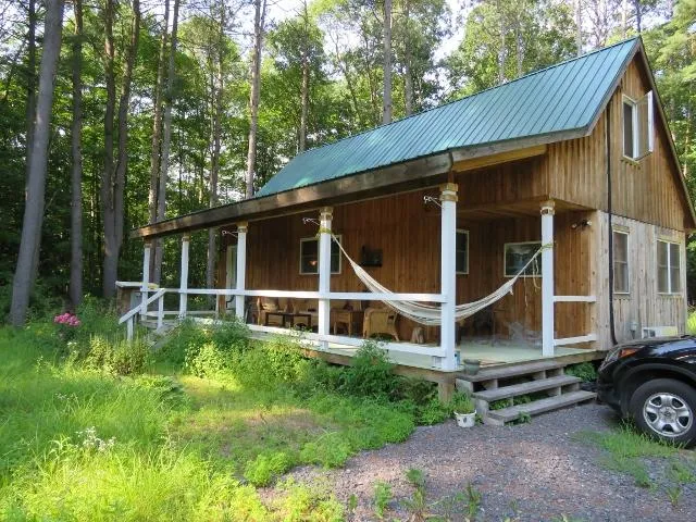 Absolutely adorable year-round cabin style home, near McConnellsville golf course, featuring large wrap around porch & long private drive, surrounded by mature pines. Home is heated w/pellet stove & has open floor plan with lots of natural wood. Main floor bedroom & loft. Financing offered w/30% down, 15 year loan. Great starter or possibly snow bird home. Large storage shed w/glass doors planned to be studio or possible guest house. Must See! Underground power & drilled well. Offered turn-key w/all furnishings & appliances included! Snowmobile trail nearby. Paved & plowed road.