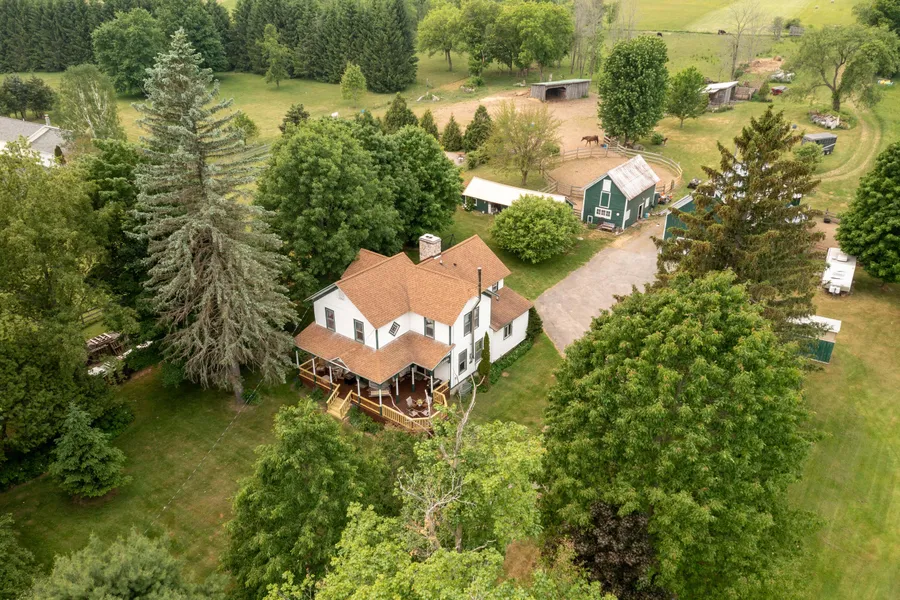 This STUNNING full of character homestead is an absolute must-see! This property has it all, the opportunities are truly endless! 6201 Cooper Street is beautifully nestled on 25.69 acres and includes a second parcel with 13.98 acres totaling about 39.67 (+/-) acres of gorgeous land full of trails and opportunities. Conveniently located a short distance from the NYS Thruway, Vernon Downs, Turning Stone Casino, Utica/Rome Speedway and other amenities. A breathtaking entryway opens to a large deck to enjoy your morning coffee or tea, or to unwind after a long day! 4 bedrooms, 1 full and 1 half bath, kitchen with an impressive island and eat-in nook, outdoor jacuzzi, living room, dining room, and office space, enclosed porch, and back porch, 4 buildings, 1 large 2 car garage/2 level barn, a tack room, 3 stall barn & feed area, 1 rec building, a pool house with a pellet stove, and covered awning overlooking the inground pool and patio, great for entertaining! Several paddocks, hay lots, 1 round pen, a large run-in shed, chicken coop, and a private camp house nestled in the woods on the trails for a weekend or anytime getaway.