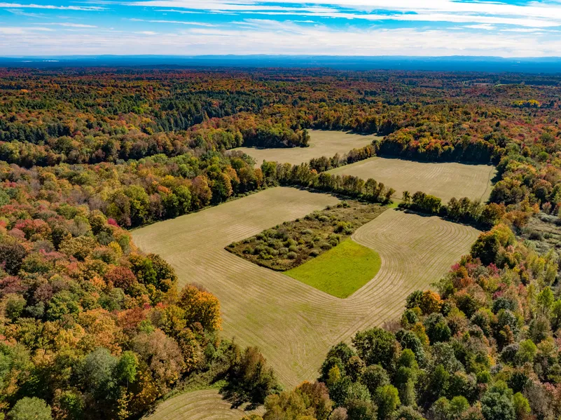 Diverse land: agricultural fields, hardwood & softwoods, an old apple orchard.