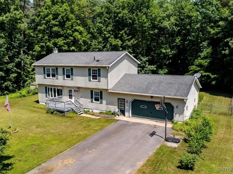 Welcome to this Colonial-style home offering the perfect blend of country setting and neighborhood convenience. Situated on a peaceful street just 10 minutes from both Camden and Rome, this home provides the best of both worlds. Set on a generous .63-acre lot, the property features mature trees lining the left side and back, creating a serene and private setting. A large storage shed with a concrete floor, electricity, and a overhead door offers the perfect space for hobbies, storage, or a workshop. Inside, the home boasts 4 bedrooms and 2 full bathrooms upstairs. The hall bath includes double sinks, while the primary suite features its own ensuite bath with new flooring, a walk-in shower, and walk-in closet. On the first floor, there is a bonus room that would make a great office, den, hobby room, or extra bedroom. There is a wonderful first floor laundry room you will love, along with a pantry closet in the kitchen, granite countertops, and new stainless steel kitchen appliances. Step through the sliding glass door to the freshly sealed back deck-perfect for relaxing or entertaining. Downstairs, the full, dry basement offers many possibilities-use it for storage, a game room, gym, or even a guest area. An egress door provides access directly into the attached 2-car garage. Additional highlights include public water, annual furnace servicing, and a recently pumped septic system (2024). This is a solid, well-built home with plenty of space, modern updates, and room to grow. Schedule your showing today and make this wonderful home your own!