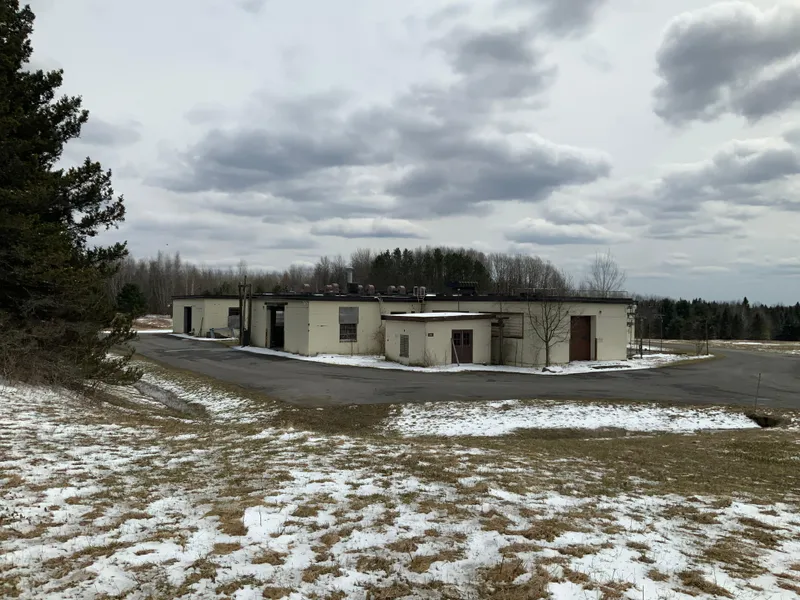 Building is Approximately 12,000 square ft. of cinder block construction including two large parking bays for equipment storage, boat storage, plenty of room for tractors, ATVs and snow machines. Potential for refurbishing into living space with very solid construction.