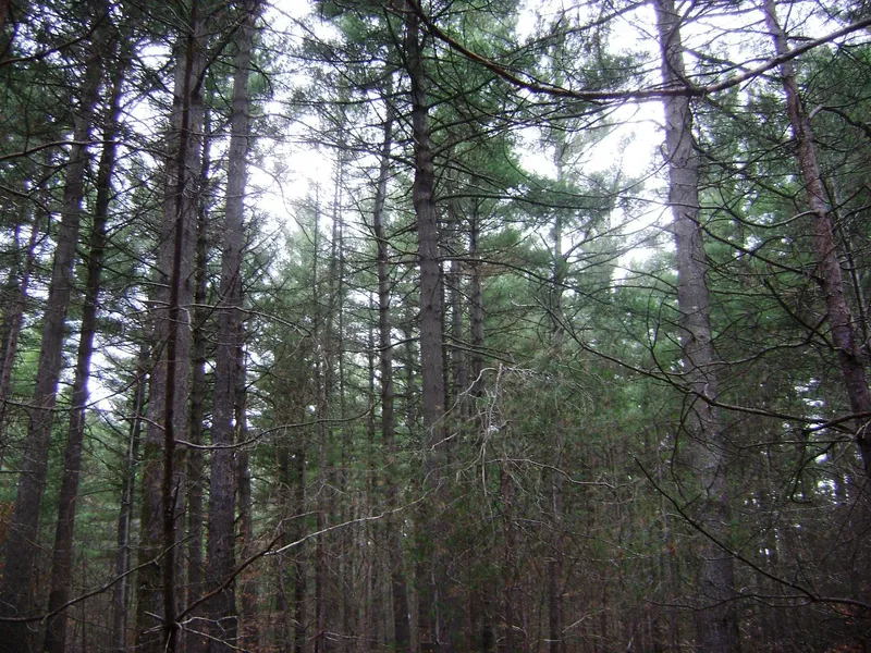 There is a nice mixture of mature ever green trees to build your cabin in.