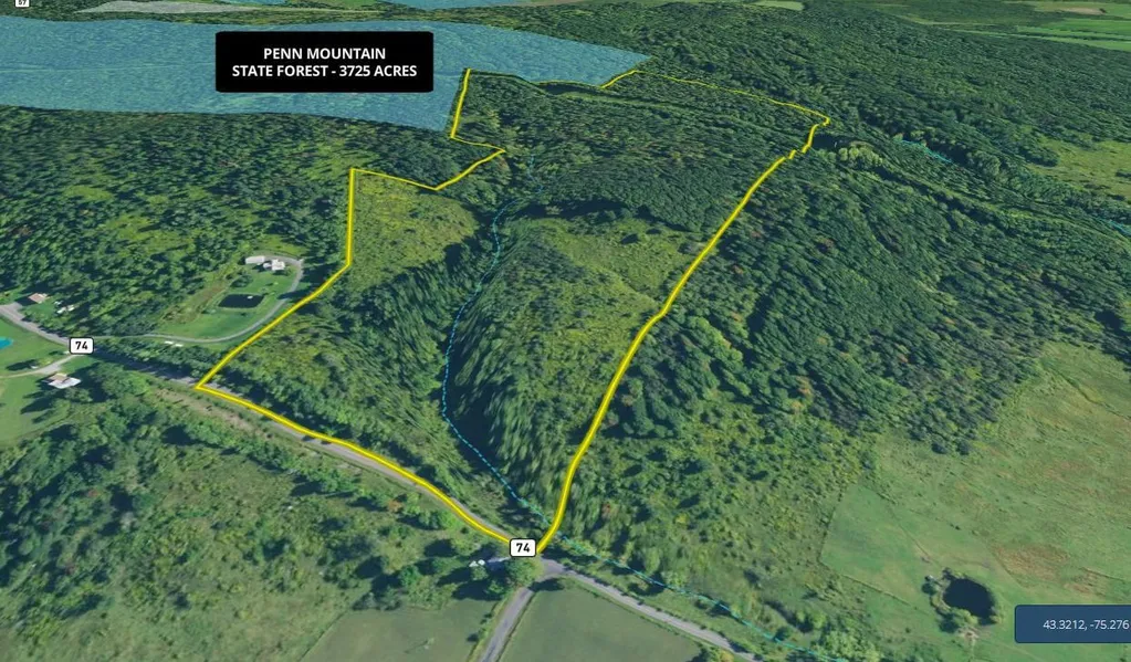 Enjoy the hunting, wildlife and beautiful views from this hillside location, ideal for your new hunting camp, year-round getaway or new home. The property rises moderately from the road from the 782+/- feet of road frontage on N. Steuben Road. Featuring multiple ravines, 2074’ of a stream running through the property, several ridges, woods, and open brushy areas, the property offers diverse habitats well suited for hunting and supporting area wildlife. Whitetail deer, coyote and grouse were all observed when recently walked, and the habitat is ideal for wild turkey and other game. There is electricity available at the paved, year-round town-maintained road. The woodlot has timber income potential, with a mix of hardwoods, heavily maple, and softwoods as well as many wild apple trees located throughout, offering additional food sources for the deer, turkey and other wildlife. Running along the far back side there is a transmission line, which makes an ideal spot for strategically located tree stands and shooting lanes, while the ravines are a natural funnel for whitetail with the brushy areas offering habitat for bedding as well as browse. Along the top ridge, this property borders the Penn Mountain State Forest, with 3725 acres of public lands for hunting, as well as 4.75 miles of forest access trails and old farm lanes for hiking, trout streams and ponds for fishing, as well as 3.67 miles of trails for snowmobiling. Delta Lake State Park, is only 10 minutes away, with the 2200 acre + Delta Lake, offering public picnic, playground and beach areas along with a public boat launch and quality fishery for many species, including walleye, northern pike and bass, among many others. Amenities are available only 5 miles away in Remsen, while additional shopping, restaurants and entertainment are available in Rome 14 miles away and Utica, only 17 miles away. NYC/George Washington Bridge is 4 hours from this property. **Subject to Town approval of sub-division. Additional 45 acres of adjoining property are also available.