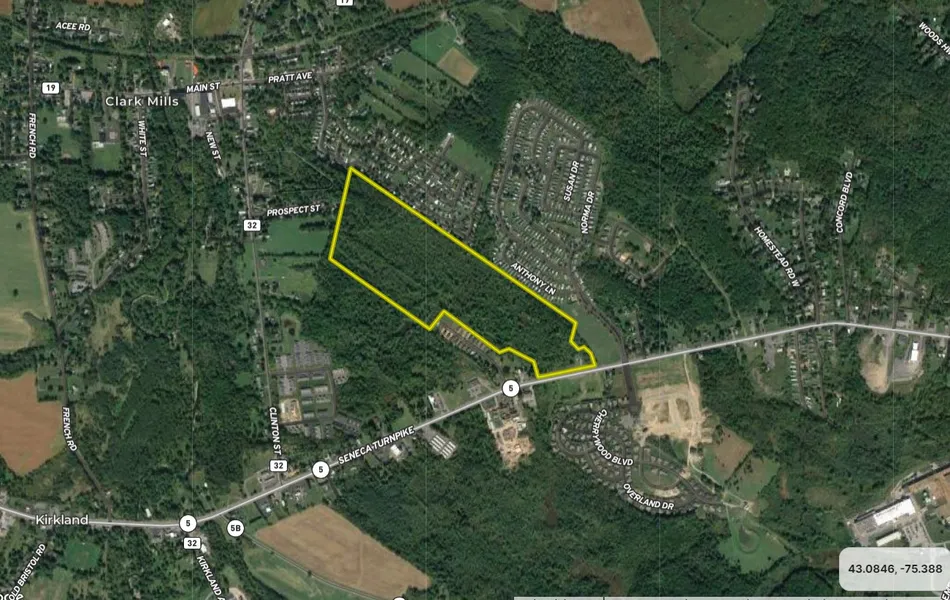 Investment / Development opportunity with a large tract of prime acreage zoned for retail business on a major state highway. There is approximately 725’ feet of road frontage with heavy traffic on NYS Route 5 (Seneca Turnpike) just over 2 miles west of Commercial Drive and the Sangertown Square Mall in New Hartford. The property is serviced with public water, sewer, natural gas, and power. The property features over 72 acres and is mainly wooded with level topography. Two billboards are currently rented year to year, providing additional supplemental income. The property is located in the Clinton School District. The property is just minutes away from the major shopping district, a multitude of restaurants and major employers, area colleges, including Hamilton College in Clinton, Utica College & SUNY-IT, and cultural and entertainment venues in the surrounding greater New Hartford & Utic...