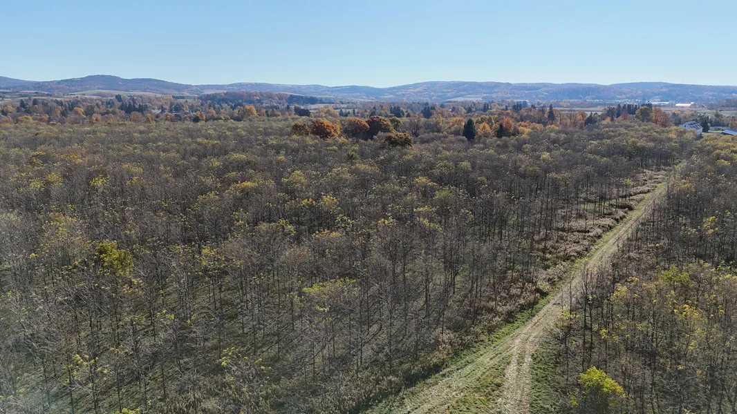 The property is made up of 5 separate tax parcels with multiple locations to build your dream home with scenic views of the surrounding areas. The road frontage is 1130 ft. with electric, public water and sewer available. For the outdoor enthusiast, there are many trails to hike, ample wildlife sign in the southern tier zone, plus a small creek on the property. Interior road inside the property leads to a terrific hideaway country home site. ideal location for family compound, lodge or log home. Network of roads provides access around the lands perimeter and into all the Black Walnut rows for easy maintenance.