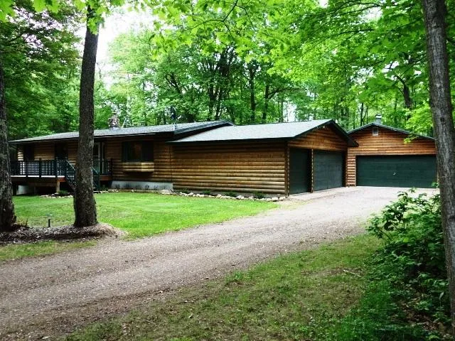 This is the perfect property waiting for you and your family. Pristine, well maintained 3BR/3BA, finished LL w/walkout. Located in a quiet neighborhood on a large wooded lot, circular driveway w/a 3 car attached & 2 car detached garage. Ranch style w/log siding, large front deck off of LR, nice entry from garage to kitchen/dining area w/new wood floors, back splash & lighting. Large LR w/cathedral ceiling & big Bay window w/an open railed stairway to LL. Main Level MB suite, another BR and BA. LL has a large FR w/fieldstone wood burning FP & walk out to a spacious, landscaped yard. There is also an office, Laundry, BR, BA & hobby room w/wet bar on the LL. This property has everything you have been looking for and is priced to sell. Don't miss this opportunity, call to view it today. MLS #142656