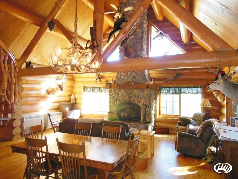 - Beautiful 3 bedroom, 1 bath log cabin with cathedral ceilings and impressive fieldstone fireplace
