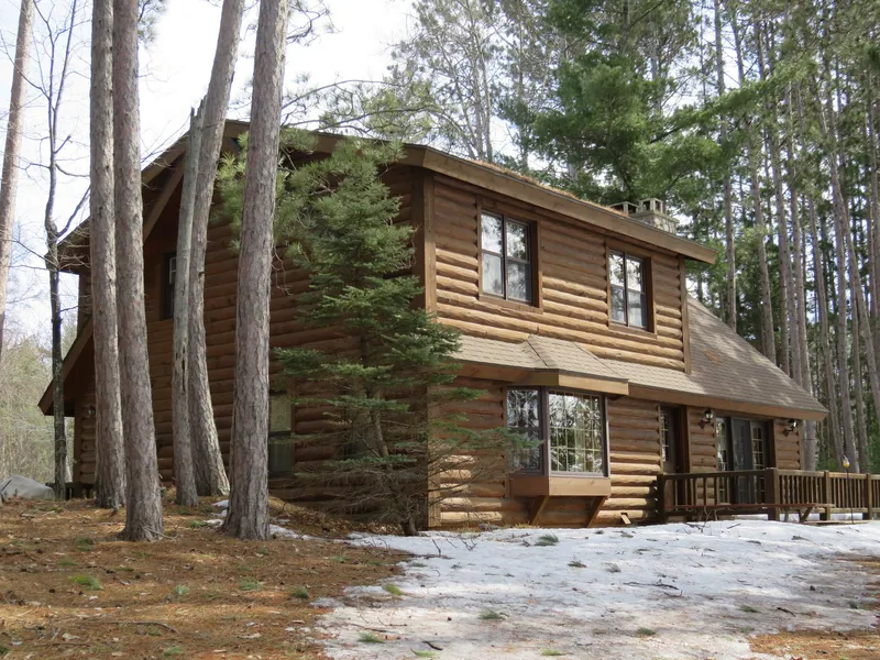 Private, high quality, well maintained 3 bedroom, 2 bath log sided home on beautiful Maple Lake. Situated on 2 acres, the home faces west for you to enjoy the warm afternoon sun and gorgeous sunsets. Wake up to the picturesque view of the lake through the bay window of the master suite. The living room vaulted ceiling with the towering stone, wood burning fireplace sets the mood for romantic nights during cool seasons. Take a kayak, canoe, pontoon or pleasure craft of your choice for a spin around the lake. Other features include two additional bedrooms on the second floor with full bath and a loft sitting area overlooking the fireplace. Plenty of storage throughout and wonderful craftsmanship is displayed in the living room book shelves and built-ins. Family room, utility room and workshop round out this offering in the lower level. Jump on your snowmobile in winter or ATV in warmer months and ride to great destinations. Located mile from town and close to several boat landings on the Three Lakes Chain.