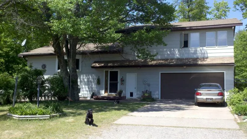 Bearskin Lake Access Home! Walk right across road to your own 10' deeded sand frontage access on this popular all-recreation lake! The pier is included! This 3BR, 3BA home has many updates including a New Kitchen with appliances replaced in 07', hickory cabinets, a breakfast island, many windows replaced in 07', a very large Master Suite w/tons of closet space and a Master Bath! The finished lower level has a wood fireplace and an exterior door to the backyard, along with the interior access. Spacious rooms & lots of closet space, central vac & a 26x27 pole building for your toys! Outside you'll find extensive landscaping including apple trees, grape vines, perrenials galore and a beautiful shaded patio with a firepit! If waterfront access, privacy, nature & a nice family home is what you're looking for...this one is a must-see. Original price was $224k! Priced to sell.