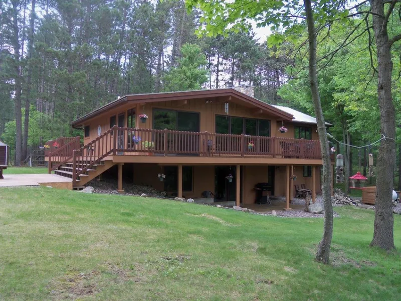 Perfect location on 10 beautifully wooded acres, within minutes to town. You'll appreciate the circle drive when entering the home area. Large pines, maples and flowering crab trees, along with some good Northwoods views. The Timbershore home was built in the late 70's and the Sellers have done an extensive remodeling/ addition in 2002 which includes a expansive family room with floor to ceiling stone fireplace,their lower Master Bedroom area, and wet bar and large built in table/island. The loft area has been used as a huge office area, could easily be opened up from the main level of the home. Sellers have done many extras including new septic, water filter, softener, sinks and counters in the kitchen, etc, you'll notice immediately that these sellers are proud of their home and it shows. The extra large Garage is insulated, heated, just a great work area. There is a large storage area...