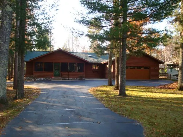 This home has everything: 5 BR,4BA, 1 BR being a master BR suite with BA & walk in closet. Cathedral ceiling with skylights in the Great RM & french doors lead from LR to the large sun deck w/beautiful back yard. Nice open concept KT/DR/LR, great for entertaining.Lower Level has a large family room, 2 BR's, 1 Full BA, hobby room & 2 storage areas. Many extra's include: screened in porch, blacktop circular drive, city water & sewer, Gas FP in the LR, Butternut wood T&G accent walls in the Great Room & Entry,close to Boat Landing & Carol Beach on Lake Minocqua. SPECIAL ALERT: 1.Tax Bill reflects more R.E. than being sold. 2. Back parcel & this home on same Lakeland Sanitary meter & when sold will need to be disconnected/separated from the city water/sewer that is provided from the home.