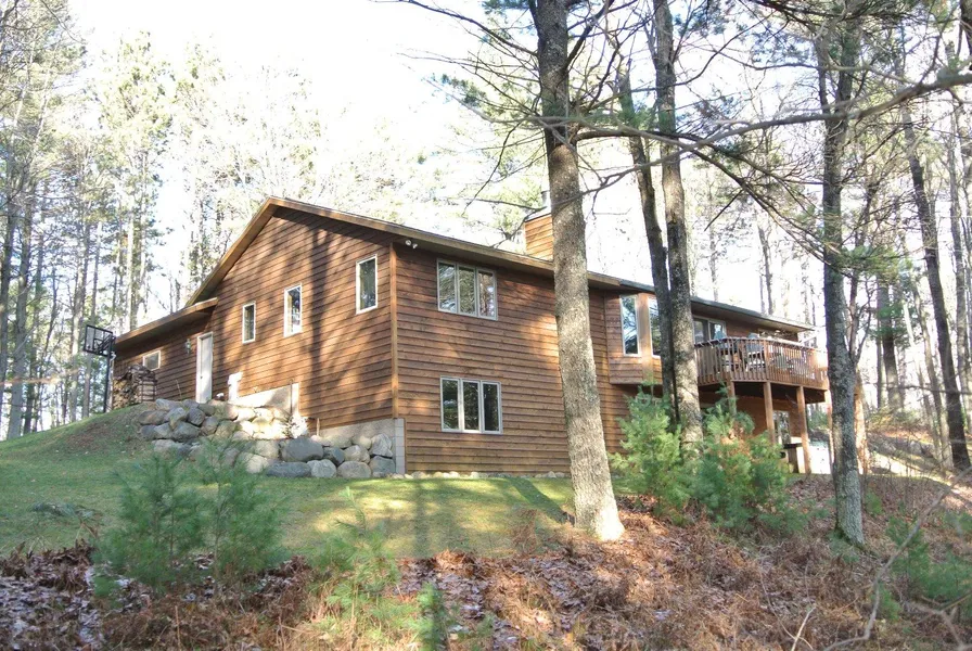 Timber Ridge home with a view! This may be one of the best homes in Timber Ridge because of the fact that it overlooks a forested out lot. The out lot provides a fantastic view and privacy. Really, almost no one has views this dramatic in the Midwest! Another great aspect of this home is the floor plan. The home features that open floor plan that everybody is looking for these days. Central kitchen, dining area, and living room that all flow nicely together and have windows looking out on to the deck and the view beyond. There is also wonderful separation between the master suite and the other two bedrooms in the home, giving the master's quarters extreme privacy. The basement is finished with a fourth bedroom, an office, a rec room that has direct access to an outdoor patio, and of course plenty of storage. This great year-round family home has a modern Northwoods feeling and is conveni...