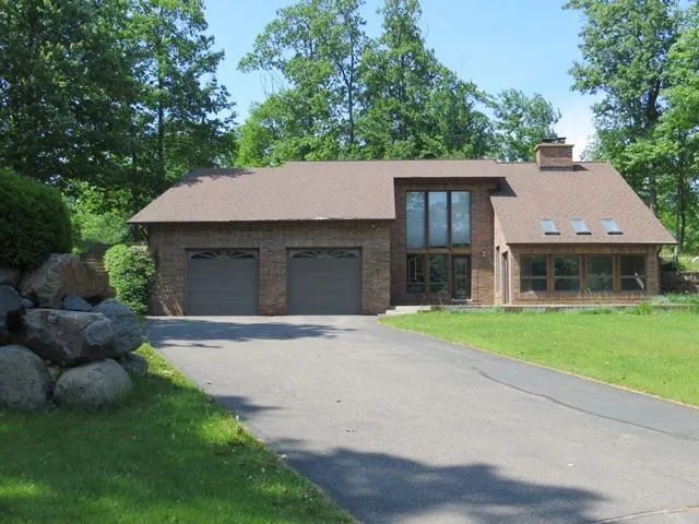Quality-built 3 BR, 2.5 BA beautiful brick and cedar-sided home at the end of a culdesac with 1.8 park-like acres! Just a couple miles from town, you'll love the extensive landscaping with huge boulders brought in, 2 patios, perennials and a small remote-controlled waterfall pond. There are so many cool things you'll notice, including a brick interior arched doorway, 3 gorgeous stone fireplaces, a large eat-in kitchen with breakfast bar, built-ins, a sun-room with hot-tub. The upper level has a master suite with attached master bath, walk-in closet and its own stone fireplace, along with 2 more bedrooms and a full bath. There's cable/high-speed, natural gas, hydronic heat & a 2 car attached garage. Many updates include refrigerator, roof (6-7 yrs), water softener (5yrs), bathroom & more! This home has character! Don't wait to see this!