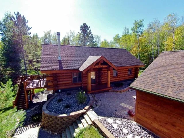 Beautiful Scandinavian method log home is set among over 3 acres of land, with a heavily wooded lot and beautifully landscaped yard. You will appreciate the craftsmanship, attention to detail, and overall magnificence of the hand scribed white pines from the Upper Peninsula used to create this masterpiece. Built in 2012, & newly stained in 2015, this home is move in ready, & all furnishings are included. Open design & intelligent floor plan provide main level living, & a fully finished lower level. High end finishes, appliances and solid surfaces adhere to the overall quality of this residence. The Great Room earns the title w/beamed, vaulted cathedral ceilings. This is the focal point where you cook, eat, & entertain in front of a field stone fireplace & sunroom. Ten different types of wood are used inside to ornament the finish work topped off with a unique cedar stair case. A three ca...