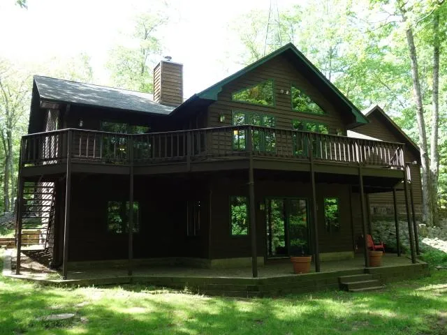 This exceptional 4BR/3BA Timber Ridge home has the best of both worlds - private & close to recreational amenities. Situated on over 2 wooded acres creates a quiet location. Plus you are close to golfing, swimming & trails. As you enter the open concept LR/KT & DR you will notice the maple wood floors & cathedral knotty pine ceiling. Wall of windows in the LR provides amazing forest views & all accented w/the brick wood FP w/insert. Sliders off the LR lead you to a spacious full length of home deck. KT boasts Hickory cabinets & breakfast bar. MBR has sliders to access deck & master BA w/double sinks. Another BR/Office & BA finish the ML. LL walkout w/patio sports a family room w/dry bar, 2 more sizable BRs & tiled BA. There is a sizeable laundry & plenty of storage. From mud room you can access oversized 2 car att heated gar w/black top circle driveway. This marvelous property is beautif...