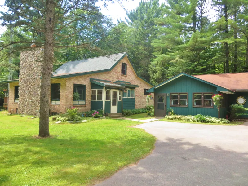 Hansel and Gretel live here and they must sell! This charming country cottage style brick home is fantastic with history and charm!! Sitting on 21.26 acres of beautiful wooded privacy bordering State Forest and just a few miles from Lake Tomahawk! The house has 4 fireplaces & also comes with a 3 car garage, 720 sq ft studio w/full kitchen/sunroom & bath, shed and a 26x28 vertical log workshop! The main level of the home has original hardwood, a large living room with gas FP, nice kitchen/dining, den, 2 Master Suite bedrooms each with their own gas fireplace and adjoining bathroom!! The upper level has a 3rd bedroom, bonus room & 1//4 bath! There is a large basement with a gas FP, updated furnace, water heater. Other updates are roof & septic and various windows. This a great property and has such character. You'll have a hard time finding anything like it. Come and see this today!!
