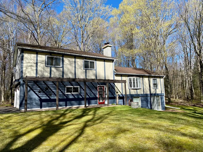 This 3 bedroom (plus office with a closet) 2 bath home with 2 car attached garage on a pretty wooded lot is located approx. 7 miles west of Rhinelander. The home has pine ceiling with beam accents, wood flooring in dining room, French doors to the sunroom with electric fireplace, trex decking, spacious kitchen with wood counter tops & all appliances included breakfast nook & half bath on the main floor. The master bedroom suite has a walk-in closet, private full bath with tub shower unit & cedar closet close by. There are 2 more bedrooms (one with walk in closet) & an office with closet, all with ceiling fans & a built in bookcase in the hallway. The walk out lower level has a spacious family room with woodburning fireplace, patio door, large storage room with shelves and pantry, & utility room. The laundry room is just off the entry. There is a newer shed in the back yard, a workshop, fire pit area, large pergola by entry.