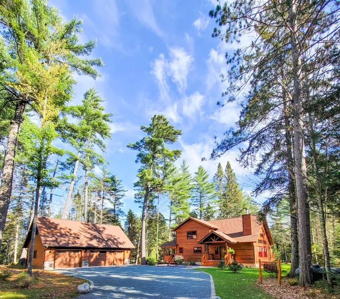 No details have been left behind on this beautifully constructed 3BR 2.5BA custom home built in 2016 that was meticulously designed and has been well maintained by the sole owners. Immediate awe sets in by the beauty of the open concept kitchen/great room with a wood burning fireplace, granite counter tops, cathedral knotty pine ceilings and oak flooring. The LL is stubbed for another BA and could be easily finished. Extensive landscaping highlights the almost 4-acre lot bordering public land with 527' of mixed frontage on Fourmile Lake (Three Lakes Chain) with end of road privacy. The 3-car garage with upper-level storage, screen porch, 12'x 16' back porch, patio, and so many other features make this property something dreams are made of.