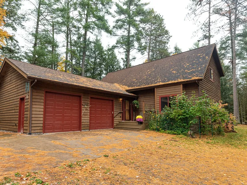 Ultimate privacy, abundant wildlife & over 170 acres of State Land at your fingertips on the Three Lakes Chain. This 3 bedroom, 2 bath home is nestled at the end of a town road & features an open concept great room with a pellet stove and kitchen with granite countertops & large island. Eat in the dining room while watching the wildlife and enjoying the lake views or enjoy time outdoors on the large deck for grilling and outdoor entertaining. You will appreciate the standby generator and two-car heated attached garage with 8x18 workroom. The two bay detached garage features a 21 X 25 bay that is insulated and heater ready to make it a year round workshop, a 12 X 25 bay for toys or vehicle storage and a lean-to for additional outdoor storage. The garage 2nd floor has exterior entrance and ready for finishing. The outbuilding can be used for a dog run, chicken coop or playhouse. Located be...