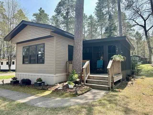 SHISHEBOGAMA LAKE. Lakeland Village 55+ Community. Carefree living with this 2-bedroom home. Open concept living/kitchen. Spacious 3 season sunroom. Kitchen w/skylight, pantry, built-in bev. frig. Att. garage with bonus storage closet. New within 4 years; siding, roof, garage door, furnace, windows, sunroom, vinyl plank flrs, carpet. Convenient location within the Village. Included in monthly $625. HOA is Cable, lawn care, trash removal, water, sewer, use of laundry, beach area, lodge facility for group entertaining and firepit patio. Great year around residence or vacation home. All the updates have been done, just pack your car and head north to start enjoying life in the Northwoods. Shish is a 718 acre full rec lake, great fishing, connects to 264 acre Gunlock Lake. Don’t miss this affordable opportunity for easy lake living with this move-in ready home, a MUST SEE. ** Kit island is not attached or included.