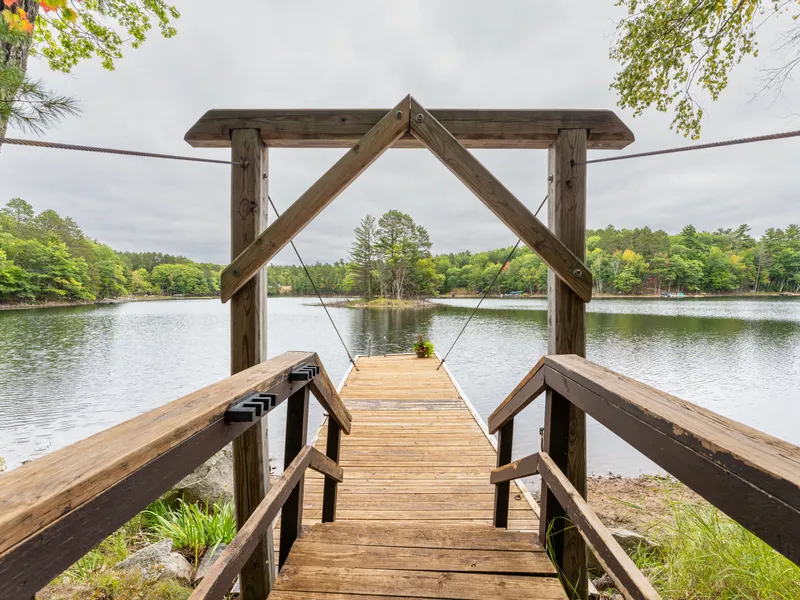 Waterfront Log Home Charm. As you step inside, you'll be greeted by the warmth and character of a true log home with its fieldstone fireplaces. The natural wood finishes and cozy atmosphere make this a perfect three-bedroom seasonal home or a year-round retreat. Situated on an extra large lot with over 340 feet of lake frontage. Relax and enjoy the island views on the cantilevered dock that extends into the crystal-clear waters of Lake Seventeen. Enjoy lake privacy because there is no public water access. The generous yard offers plenty of space for outdoor activities, gardening, or simply lounging in the sunshine. The large driveway can accommodate multiple vehicles and provides easy access to both the upper and lower levels of the home. Three-car detached garage with a heated workshop. You will savor the stunning views of the lake and the captivating island in the distance. Don't miss ...