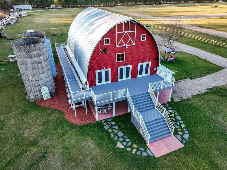 Unique Fully Furnished 3 Bedroom 1 Bath House and Barn on 2.3 acres. Newly renovated Red Barn, Two bars stage and dance floor awesome sound system TV s both levels, large balcony, Camera and TV s both levels of barn. This traditional Barn is complete with high domed ceiling, wooded beams, wagon wheel chandeliers, multiple bathrooms and shower room lower level, 2 fire pits 200 chairs, tables, Red Bar stools included. Start a business live in the house or have your own remodeled house very unique barn w/ two RV hookups brag to your friends or family. Home has been completely been remodeled. Home comes Furnished. Additionally attic finished w/ two bedrooms and closet. Successful vacation rental. Seller is licensed Real Estate Broker in Wi.