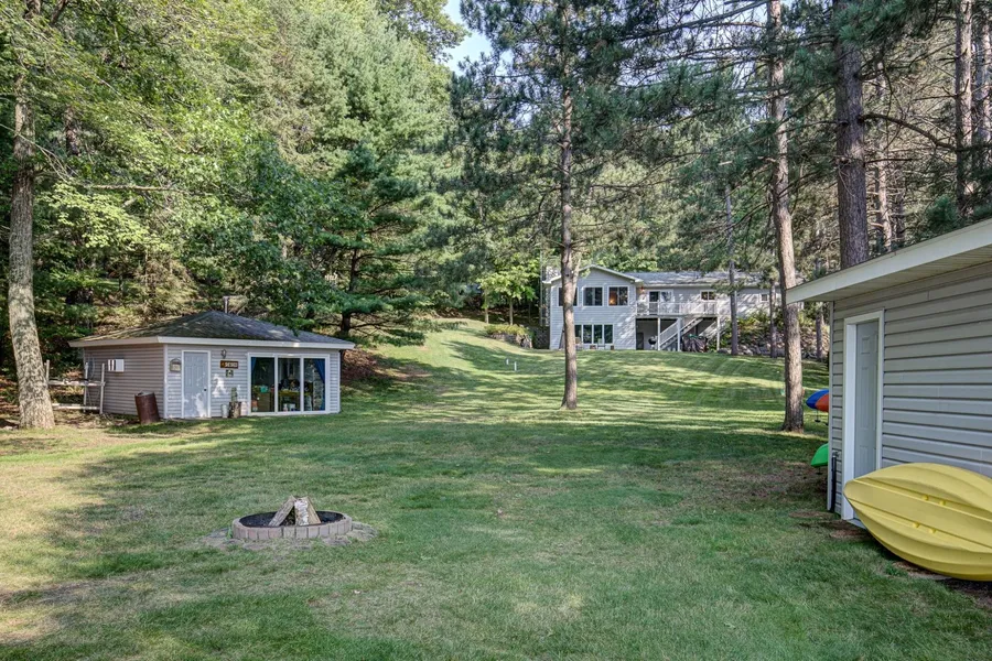 Incredible opportunity on Squirrel Lake! This 3BR, 2BA home sits on 1.58 acres with 150' of level, sand frontage on one of the Northwoods’ top 1,300-acre full-rec lakes. Minutes from Minocqua, this is arguably the best location on the lake. The home features hand-scraped hardwood floors, a large great room, low-maintenance exterior, and lakeside deck. Two main floor bedrooms plus a finished lower level with a 3rd bedroom and family room utility/laundry and full bath. A dry boathouse with rail system, quality newer dock, and oversized 2+-car detached garage for all the stuff, make this a rare find. The lakeside art studio offers endless potential as a creative space, bunkhouse, or guest retreat. Gently sloped lot with flat yard ideal for lake living. Year-round recreation out your door—boating, snowmobiling, fishing, hiking, or relaxing by the water. Super solid home with room to expand or enjoy as-is. Waterfront properties like this on Squirrel Lake are rare—don’t miss out!
