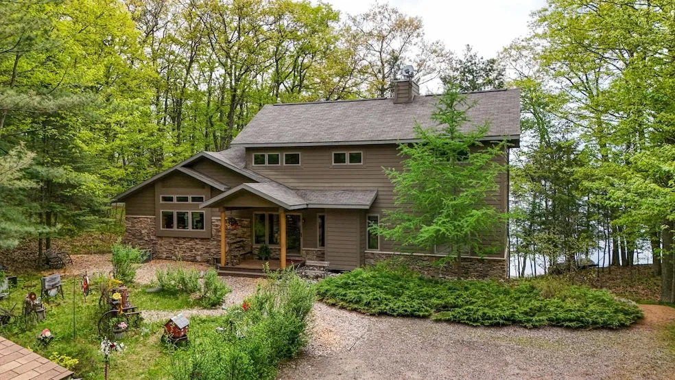 Unique opportunity high-class standalone lake south of Minocqua. Beautifully maintained 4BR, 4BA home with 260 ft of private, sandy frontage on Alva Lake. The main level fts an open-concept kitchen & living area with a gas fireplace & access to a spacious deck with stunning lake views. The primary BR includes a gas FP, natural stone en-suite, and cedar walk-in closet. Upstairs offers 2 additional BRs & a full bath with both a walk-in tile shower & bathtub/shower. The walk-out lower level is ideal for entertaining, with a billiards room, gas fireplace & patio access to the hot tub and lakeside yard. A cozy family room with a wood-burning fireplace, bedroom/home office, bath, and laundry complete the space in the lower level. Alva Lake, 199 acres with clear waters & a 43-foot depth, is perfect for swimming, boating, or relaxing. A 2.5-car detached garage & small garage provide ample stor...