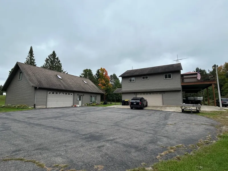 Located outside Pelican Lake, WI! This premier property consists of two homes, 3 Br/1.5Bth & 2 Br/2Bth, covered outdoor patios, hot tub, in floor heat throughout, tile floors, and open concept kitchen/living rooms. Nothing was spared in these modern builds from the custom cabinetry, built in cookstoves, main floor laundry's and walk in showers. Garages are heated, insulated with an additional carport for parking and an outdoor slab for parking. Surrounding these two great homes is a covered porch with an outdoor bar where you can listen to the creek flow into Pelican Lake. Access to the ATV and Snowmobile trails are at the end of the blacktop driveway. This property offers good privacy, a large backyard with apple trees, garbage pickup, natural gas and 3500-acre full Rec. Pelican Lake boat landing is just down the road. Come check this property out today and make it yours!