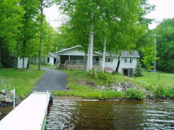 Well maintained, low maintenance home on Squaw Lake. This home features a large kitchen, wood burning fireplace, main level laundry, a 10x25 covered porch, a 10X24 screened lakeside porch, 2X6 construction throughout,and a 4 car attached heated garage. Outside there is a 30X50 detached garage, a private boat landing, a smaller storage building and a wood shed. The generator is also included. The 1.05 acre lot with 150' offers an excellent view of the lake, and distant island. Squaw Lake is an excellent area for all outdoor activities.