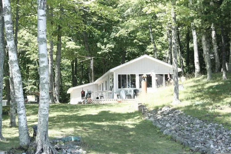 Property is situated on two lots with 1.5 acres and 94 feet of sand Frontage on Southwest of Squirrel Lake. There are two piers to enjoy spectacular sunsets and great fishing or just boating on the pontoon boat that is included. Also, 2 and a half car detached garage, 34x30 in size with a workshop and additional storage, a main house, a guest cottage, playhouse, garden house, storage shed and even a man cave with storage, bar and view of the lake! Furniture, kitchenettes, equipment in the garage and a boat is included! This truly is an all inclusive seasonal retreat with an ambiance of being in a village that appeals to everyone. That sentiment Northwoods experience of all the memorable moments can be a reality right here! Give us a call for details and let us help you make your Northwoods dream a reality!