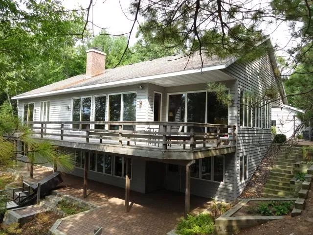 This 4BR, 4BA home offers the best of craftsmanship from Maple Floors w/Cherry wood accents, Corian counter tops, maple cabinets in the KT, many built-in cabinets & hutches, a wall of glass in the great room w/a grand view of the lake, sitting room w/Knotty Pine on walls & ceilings(all wood is from Kwaterski's), Skylights in the Hallway & KT, walk in pantry, Floor to Ceiling stone FP on the ML, Tile floors in BA's & LL, Central Vac, Safe Room & Wood Chute for easy convenience to fill the wood burning stove in the LL. The seller paid attention to detail in construction & in products by heating the paver from the garage to the home. Landscaping is complete w/paver walkways from the home to lake. A tram has also been installed to make access to the lake easier. The frontage is PURE SAND - even at the end of the dock. Enjoy the convenience of the floating dock system each year as the season changes. MLS #131767