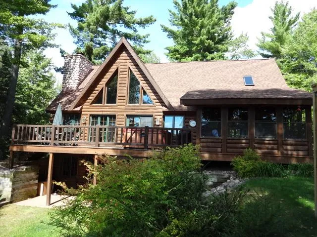 This beautiful Tomahawk Log home & guest house sits on 9.90 acres of land & 600 feet of frontage on Garth Lake in Hazelhurst. The main home Great Room has a floor-to-ceiling wood-burning FP, hardwood floors & collar ties. The MB Suite boasts a gas FP, walk-in closet, full BA & views of Garth Lake. There is also a 3-season porch facing the Lake. The walk-out LL Family Room offers a wet bar w/fireplace, BA & mechanical room. A bonus to this beautiful property is a guest house w/2BR & 1BA for family & friends. It features an open concept KT/LR/DR. Almost 1500 sq ft of garage space between main home & guest home. Perfect for your cars & water toys! A Dry Boat House w/sauna sits on the shoreline. A hot tub on the deck is included. Set up an appointment view to appreciate the great value of this family retreat! MLS #138861