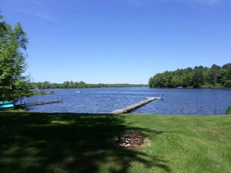 Plenty of room for family & friends to play on this Shishebogama Lake property! 173' perfect sand frontage and 8.53 wooded acres for great privacy yet easy access right off Hwy 70. Year 'round main home plus 2 seasonal cottages, 2 garages & bunk room. Log sided main home features include open K w/center island & pine cabinetry, DR open to large living room with wood burning stove & lakeside picture window, sunroom with knotty pine walls & ceiling, main floor MBR suite w/private BA & walk in closet, another BR & full BA and lower level family room walk-out. 2 seasonal cabins, Pine & Birch each offer great screen porches, small kitchen, living room, bath, bedroom & extra sleeping space. 2 detached garages have great storage space and off one garage is another bunk area! Lakefront is level with plenty of space to play or lounge and includes the lakeside shed, perfect for toys! This could be...