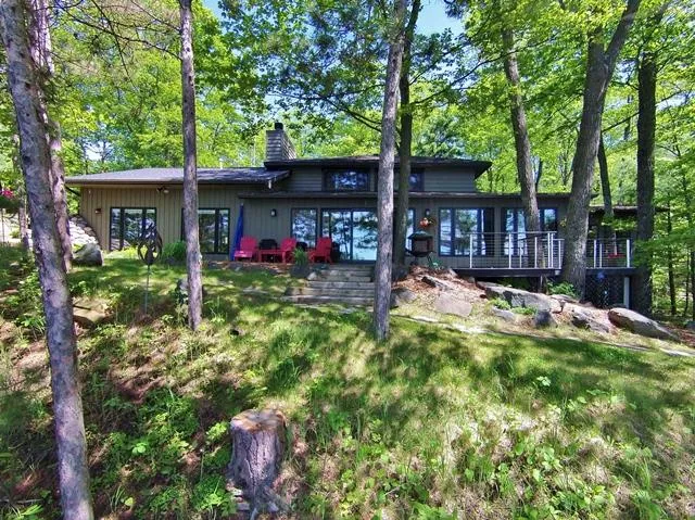 Gorgeous contemporary home with priceless 200' of southwestern exposure on Lake Katherine. Live on the Queen of the Lakes, where sought after, generational properties seldom become available! This property is tastefully landscaped, field stone retaining walls, extended living space to the back deck & patio featuring elevated lake views. THE VIEW IS SIMPLY AMAZING! Lower lakeside deck is a gathering area to spend all day in the sun, boat lift, raft, and two piers are included. The home & view are encircled by mature pines, scattered throughout the property. Artistic design & elegant touches incorporated into every room throughout this open floor plan creating many relaxing spaces. Oversized Patio doors & large windows bring light & the natural setting indoors. Maple wood flooring, granite countertops, wet bar, & kitchen w/commercial appliances set the stage to entertain groups large or sm...