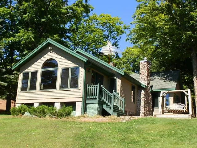 Excellent opportunity on sought-after Tomahawk Lake, Minocqua Chain of Lakes! Stand alone home with all of the condo ownership amenities! This unique cabin has many new upgrades, but still retains the feel of days past. The kitchen and bathroom are newly remodeled, and the living and dining rooms were upgraded, but in a way that retained their cozy charm. Sit in the lakeside sun room, and enjoy the beautiful view. Climb the ladder that leads to the loft area. A great place for kids to play, and, or sleep. There is a private blacktopped driveway, and a gentle slope down to the piers, and the sand beach, offering a southern exposure and a private boat slip. Also included is a 20'x24' detached garage space! Hassle free condo-style living with no yard maintenance in a quiet neighborhood on a dead end road!!