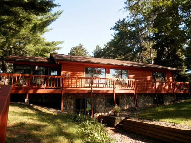 Quality built home, close to town and on Johnson Lake. This property has everything you have been looking for. There are 3 bedrooms, 2 baths a combination kitchen, living and dining area, a family room, walkout lower level a deck overlooking the lake and fantastic views. You will enjoy the cathedral ceiling and gas fireplace in the living room for those cool evenings and the four season porch for entertaining and relaxing. The lower level is a walkout to the lake where you will find a nice beach area for swimming or fishing. This home also has stand by electrical hookups for any power emergencies if necessary. There is a 2 car garage for storage and parking and this property has easy access to a main road. It's close to shopping and the hospital and any other recreational activities you might entertain. See this one now!