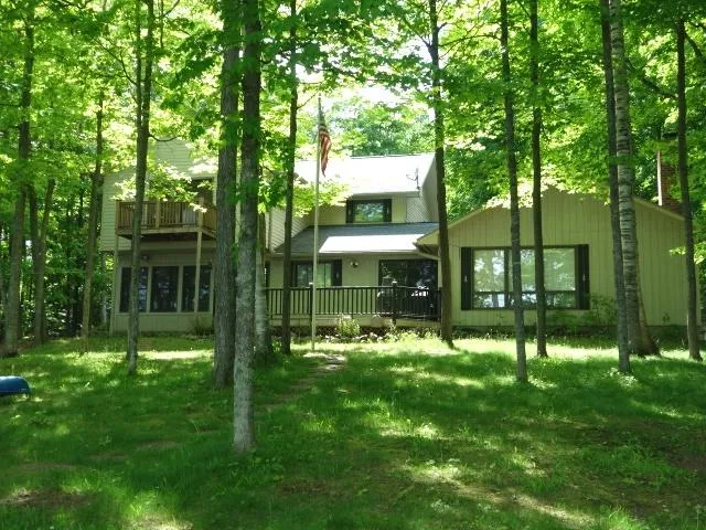 Get out of the Rat Race & enjoy this gorgeously maintained property w/end of the road privacy. 4BR/3BA Home w/quality products throughout. Level ftg. w/171' pure sand and 2+ Acre lot w/lake side fire pit. The large KT has 2 sinks, Silestone counter tops, hickory cabinets, tile floors & walk-in pantry. KT is open to the DR/LR w/cathedral ceilings & Australian Cypress floors. LR has a full fieldstone wood burning FP. Patio doors off the LR lead to the deck for relaxing & enjoyment of the great view. Off the KT is a large lake side 4 season room w/many windows to "let the outside in". Large master BR suite has an attached BA w/2 sinks & walk-in closet. On the upper level, there is an additional bonus room which could be used as a sitting room/den/exercise room. Full basement, 2 car attached garage and 2+ car detached garage. This is a fantastic property at a fantastic price! Seeing is believing! Many updates such as newer septic tank, A/C, refrigerator & newly painted. MLS 147503