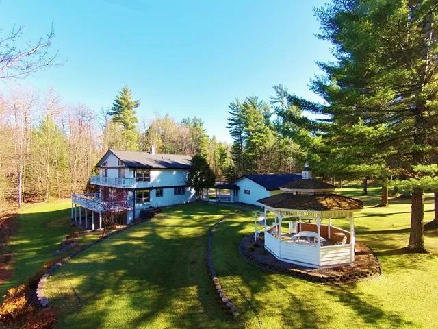 Minocqua Farmette: 10 beautiful acres on a riverfront setting, accessed by the beautiful lit and winding driveway with a beautiful and well-maintained 4 bedroom, 3.5 bath home. Beautiful decks, new patio, charming gazebo, 29x42 detached 3.5 car garage, and a 31x51 pole barn w/ heated workshop, its own 250 amp service, 2nd well (point) and pump near for water possibly for horses. Been in the same family for nearly 3 decades! This property offers abundant privacy and nature, but is just minutes to town for convenience and access to area amenities. Over the years there have been many updates to windows, roofs, patio and more. The home offers a spacious main level with beautiful views, a warm fireplace, a great kitchen with plenty of cabinet and counter space! The finished lower level has in-floor heating, family room, the 4th bedroom and a bath! This property is also being offered with the ...