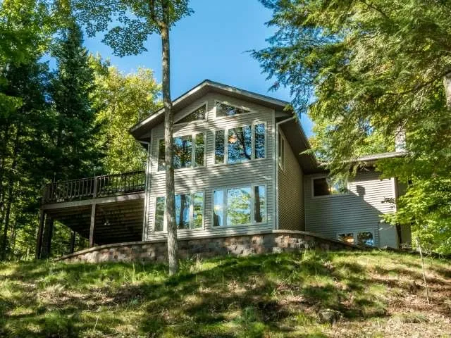 Exceptional opportunity to be on Blue Lake in Minocqua. Blue Lake has no public access, & is a pristine, sought-after lake with crystal clear waters awarding excellent fishing, boating and skiing. The property features a moderate slope to the 185' sand shoreline, SouthEastern exposure, lakeside firepit/patio area, dry boathouse & a rollaway pier. A bonus is the driveway down to the shoreline, allowing for easy access to and from the lake & private boat launch, via truck or UTV! The well maintained home has been recently updated w/fresh paint and knotty pine throughout. Focal point of the main floor is the spacious great room w/vaulted ceiling, gas FP & walkout to deck. Open kitchen/dining area. Enjoy lake views from the upper deck & lower covered patio. The lower level features a 3rd bdrm w/large lakeside windows & a walk-in closet, family room, laundry room & utility/workshop areas. The...