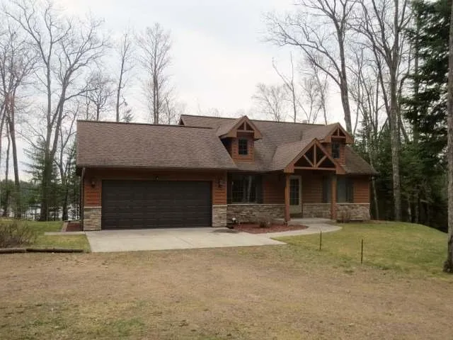 Off a quiet country road, and upon turning into the driveway, you immediately have the sense of tranquility. This 2007 quality built home, is nestled off the shore of Tom Doyle Lake. This home provides everything you need whether it is a primary home or the perfect Northwoods getaway. Open-concept living and dining room, a wall of windows that provide amazing views, a wood burning brick/stone fireplace, main floor master bedroom, and a 32 x 10 lakeside deck. The walk-out lower level has a family room, 2 additional bedrooms, a full bath and a large utility/laundry area. The family room leads out to a concrete patio. Additional amenities include a 2 car attached garage, a small utility shed at the water's edge, and the yard is nicely landscaped with retaining walls.