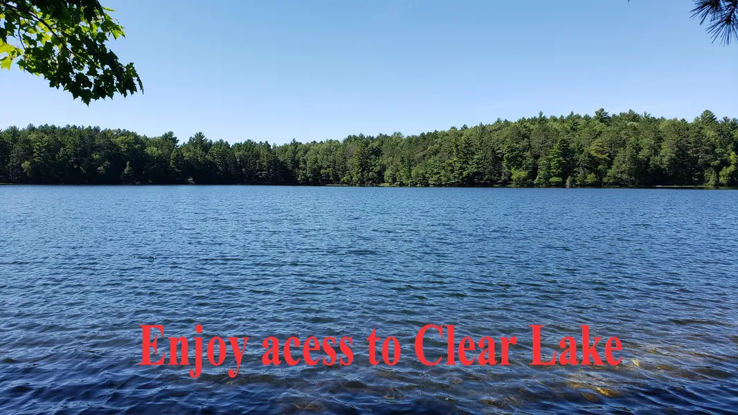 This wooded 2-acre lot is so close to Clear Lake you will hear the loons from your campsite or cottage. Just step off your land and walk a short distance to the access site on the shoreline. There you can fish, swim or slip your canoe or kayak into the water and enjoy this stunning Northwoods lake all you like.