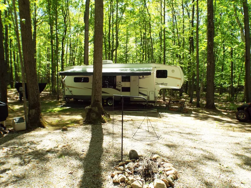 Situated in the heart of the Three Lake Chain of Lakes is this beautiful wooded 2.5 acre parcel of Tall Pine and Oaks. The privacy and easy access to the lakes are one of the many great features of this secluded setting. Another is the sellers have the driveway and a cleared area all done for you. The Best Part is there is a new drilled well and conventional 3 bedroom septic system plus buried power!! And for you to enjoy seasonally until you are ready to start your home plans, they are leaving the immaculate 5th wheel with everything included. Ready to hit the trails? Thats not a problem because they are also including the 2018 UTV and trailer with only 300 miles on it. Can you believe all this is ready for you to move right in and enjoy all the amazing things this area has to offer for such a great price.