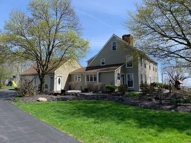 Sitting on top of the world where you can see for miles is this unique saltbox colonial on approx 5 acres. I'll get to the house in a minute. 20x40 Lazy L in-ground pool with hot tub. 24x36 office building, 2 story barn garage workshop for hobbies and animals. Pool house or indoor cabana. The house has 4 bedrooms, 3 baths and half. Custom kitchen with granite counters, 2nd floor laundry, pioneer fireplace plus 3 others, finished basement w/additional full bath, bedroom & 4th fireplace. Six person sauna. Large play area. Lots of storage. 2 Stalls in the barn. Your total country paradise.