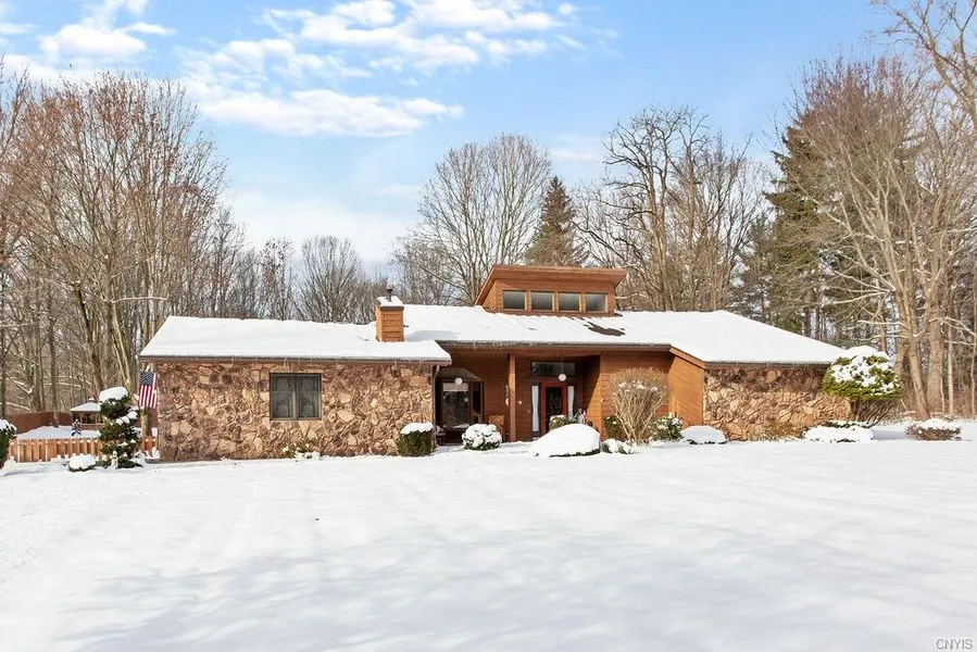 Welcome home!! Your checklist is complete. This stunning home features 3 bedrooms, 2&1/2 baths and 2.5 acres. All new floors throughout home. All bathrooms have been refinished. Two car attached garage/three season room/loft-office area. There are two additional structures on property.Pool house or could be used for a office/business includes 1/2 bath/ attached garage/and greenhouse. Water and 100 amp service. Pole barn is 36x44 has two bays/water/heat, and 100 amp service. COMPLETLY fenced property. Inground pool. Private pond, gazebo, water fountain, and putting green. Location, LOCATION!! Close to major highways, shopping, entertainment.