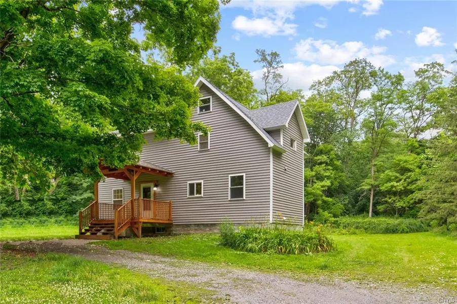 Peace and tranquility await YOU in this modern 3 Bedroom 3 Full Bath country HOME nestled on a private 1.4 acre lot with babbling year round brook, mature trees, and views of Skaneateles Lake. Beautiful custom designed front entry. First floor includes kitchen, large open space for living & dining, French doors to a private deck overlooking the backyard, a flex room (could be converted to 1st fl bedrm) adjacent to a full bathroom with shower and laundry. Upstairs are 3 bedrooms and 2 full baths, inclusive of the master suite. Recent full renovation includes new kitchen with granite counters, tile backsplash, stainless steel appliances. New electrical service & wiring. New plumbing, replacement windows, high end Culligan water filtration system, on demand hot water, newer furnace w/ central air conditioning. All three bathrooms are updated with tile floors, sleek subway tile surrounds, an...