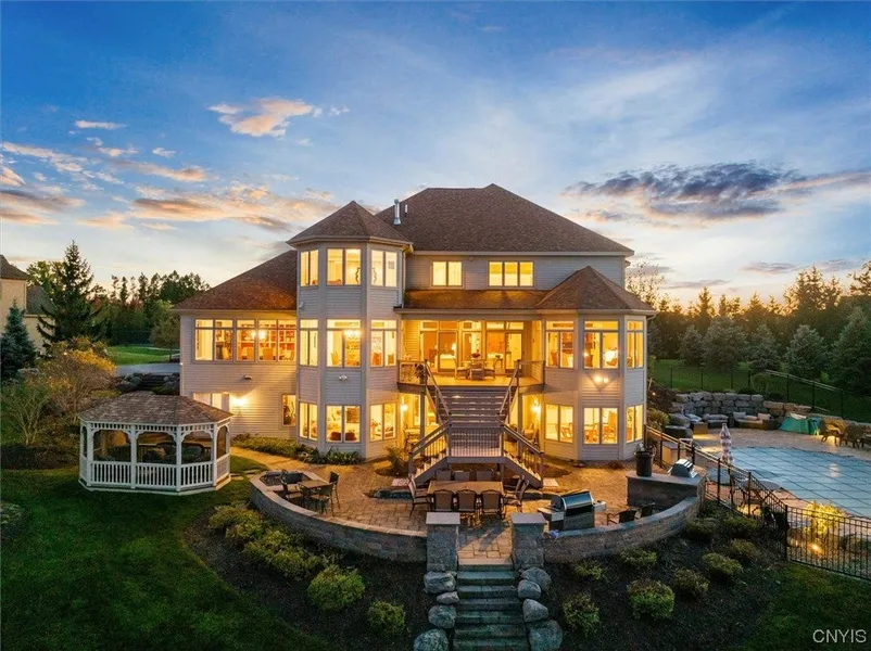NEW PRICE! AMAZING! The crown jewel of Oneida Lake! This luxurious waterfront home offers breath taking views with 236' of waterfront and 7,000 sf of living space. This custom home offers hardwood floors, radiant floor heat on all levels, gourmet custom kitchen, granite, high-end appliances, and entertainment space with open concept great room, sitting room, formal dining, living room, collectors room, den, and bar! There is a stately home office, first floor bedrooms with full bath, second floor studio, and laundry room. The gorgeous master en-suite boasts a sitting room, views, stunning bathroom, dressing rooms with built ins, and more. Entertain in the finished walk out lower level with theater room, full bath, and second kitchen. The exterior deck off the great room and patio off the lower level over looking spectacular grounds with extensive landscaping. There is a new in-ground pool, extended patios, stone stairs to the lake, gazebo, sea wall, and huge dock with other updates as well. The tennis court and basketball court are included for your entertainment. Enjoy a private cul-de-sac location close to Route 81. This home was created for relaxation and celebration.