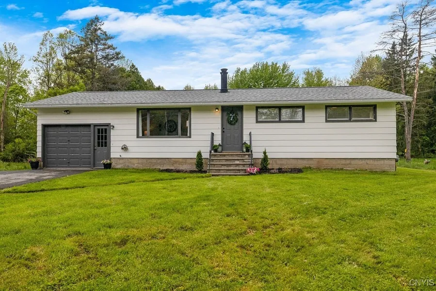 Welcome Home to this Beautifully Updated, 3 Bedroom, One Bath Ranch Home with the Convenience of one level living. Freshly Painted Throughout and a Spacious Updated Kitchen w/Quartz Countertops, Tile Backsplash and a Breakfast Bar Complete this Delightful Space! Enjoy the Roomy Dining Area and Bright Living Room with a Stunning Brick Fireplace to Cozy up by On a Chilly Evening. Imagine, Relaxing and Enjoying the Lovely Wooded View out the Front or Back Windows on your 1/2 acre estate. Unwind on the Deck which is Conveniently Located off The Dining Area or BBQ your favorite meal. Enjoy the Evening Sun as it Floods Through the Sliding Glass Door off The Dining Area and the other Back Windows Bringing in Warmth and Cheer Throughout. In Addition there are Many New Light Fixtures, Inside and Out, The Full Bathroom has a New Tub Surround, Tile Floor, Toilet, and Light Fixtures. For Peace of Mi...