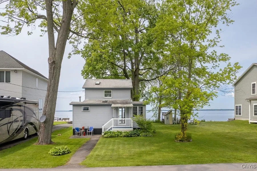 Whether you're seeking a weekend escape, year-round lakefront living, or a prime short-term rental investment, this exceptional property delivers. This move-in-ready cottage blends comfort and functionality, beautifully situated on 50 feet of private waterfront. While the cottage currently features one bedroom, the original blueprints from a 1995 renovation show a design intended for two. Additionally, the guest suite above the garage could easily be reconfigured to include two bedrooms—allowing the property to comfortably host larger groups while maintaining privacy for guests. As a short-term rental, this space offers excellent income potential. The cottage’s main level features an open-concept layout with wide wood plank flooring and a full wall of windows, offering stunning lake views from nearly every angle. The living area flows directly onto a lakeside patio, while the kitchen inc...