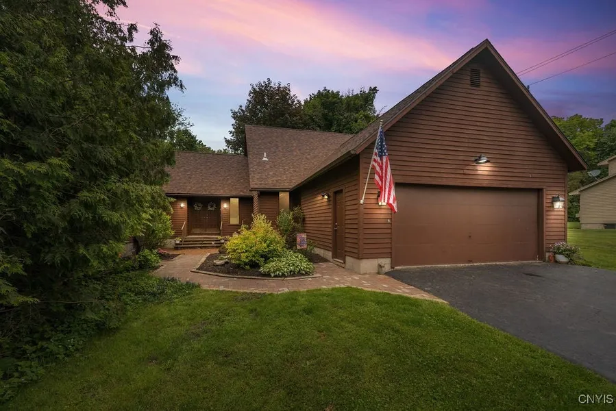 **Architectural Contemporary in Woodchuck Hill** Tucked away on a quiet street off prestigious Woodchuck Hill Road, this distinctive contemporary home at 4962 Tall Oaks Drive offers over 3500 square feet of striking design, natural charm, and flexible living space—all in the award-winning Fayetteville-Manlius School District. Clad in classic cedar siding and boasting a brand-new roof, this home seamlessly blends warmth and modern character. The main (upper) level welcomes you with a spacious family room featuring a cozy wood-burning fireplace and built ins—perfect for relaxing on chilly evenings. The open-concept living and dining room flows beautifully into the updated eat-in kitchen, where refaced cabinetry, a center island, and an abundance of natural light create a bright and functional cooking space. Sliding doors from the kitchen lead out to a large deck overlooking a private backy...